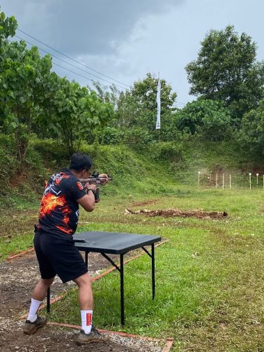 Memasuki lapangan, energi dan semangat juara nampak terlihat dari masing-masing raut wajah para peserta. Masing-masing peserta sudah mengenakan Shooting Jersey-nya. Dengan cekatan mereka mulai memperlihatkan keahlian menembaknya, membidik dengan baik menarik pelatuk tepat sasaran.